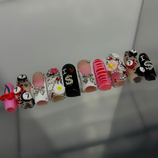 I'm 18 years old, from NYC . I started doing nails about 3 years ago now. Nails have been my way of not only expressing myself but relaxing and decompressing. I chose press-on nails specifically because I love to travel and I'm never in one place! However I am licensed in Virginia and occasionally take in-person appointments lol. Thank's for stopping by & I hope you find something you like!